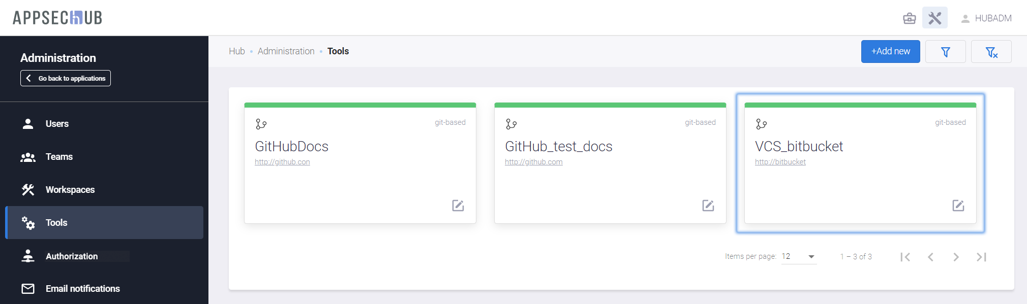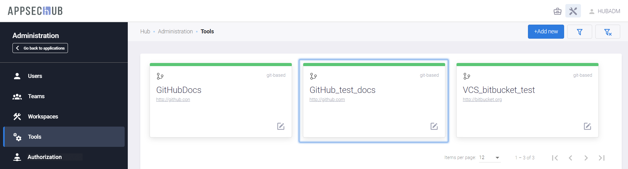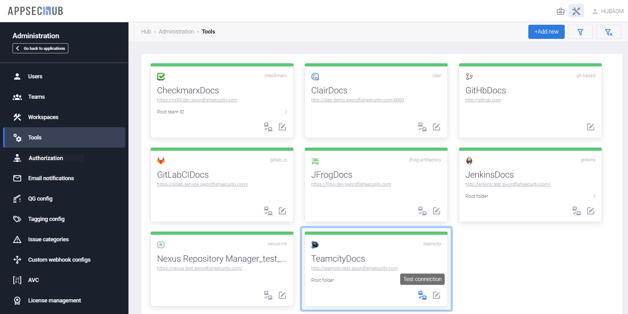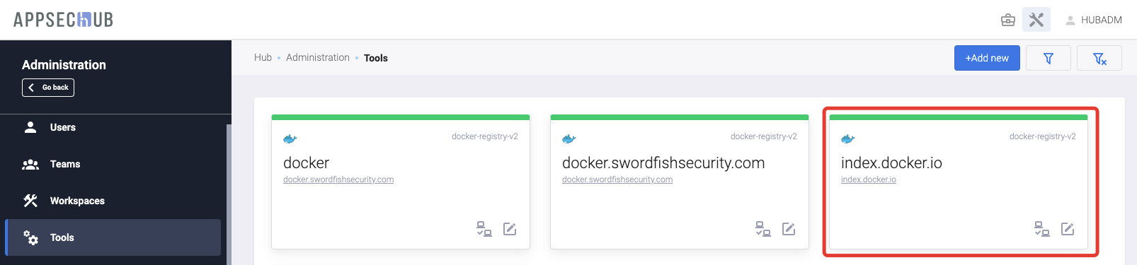 Нажмите кнопку +Add new в правом верхнем углу страницы Tools, чтобы начать подключение нового инструмента.