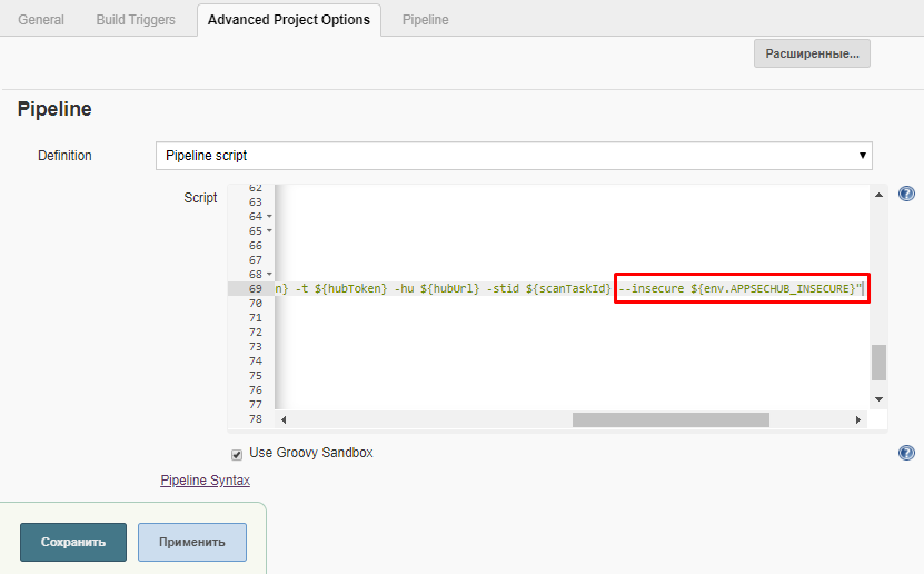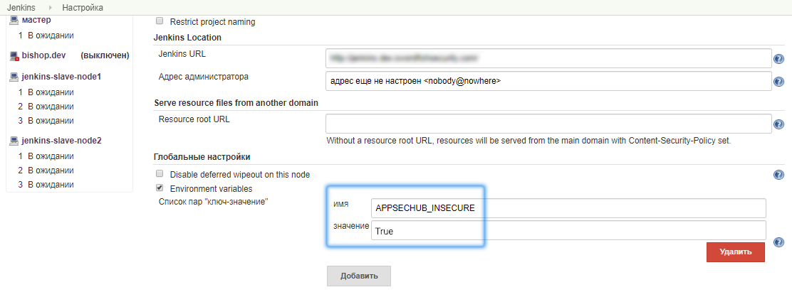 Добавление переменной окружения APPSECHUB_INSECURE в Jenkins