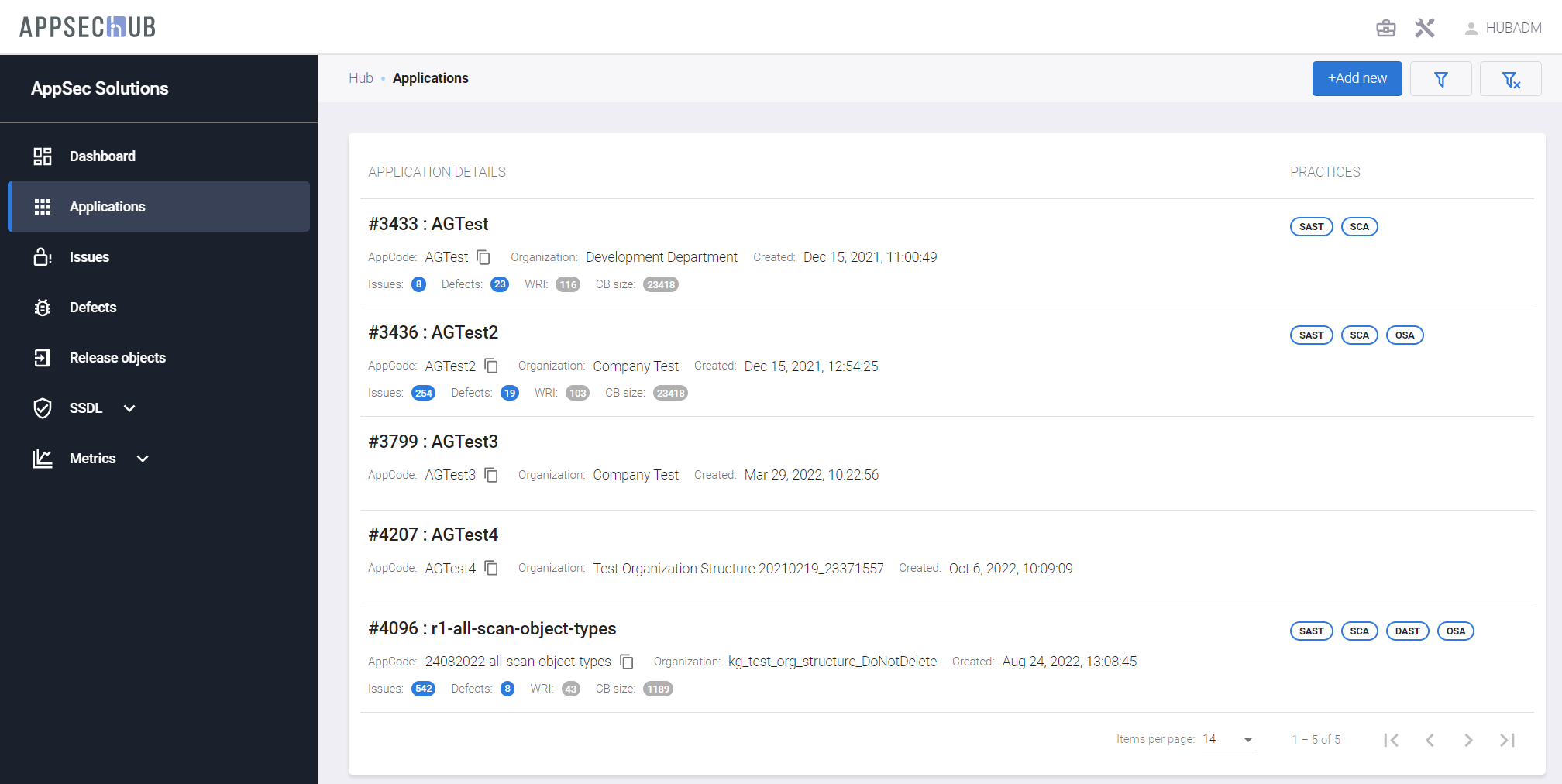 Выберите пункт меню Applications и нажмите кнопку +Add new, чтобы создать новое приложение.