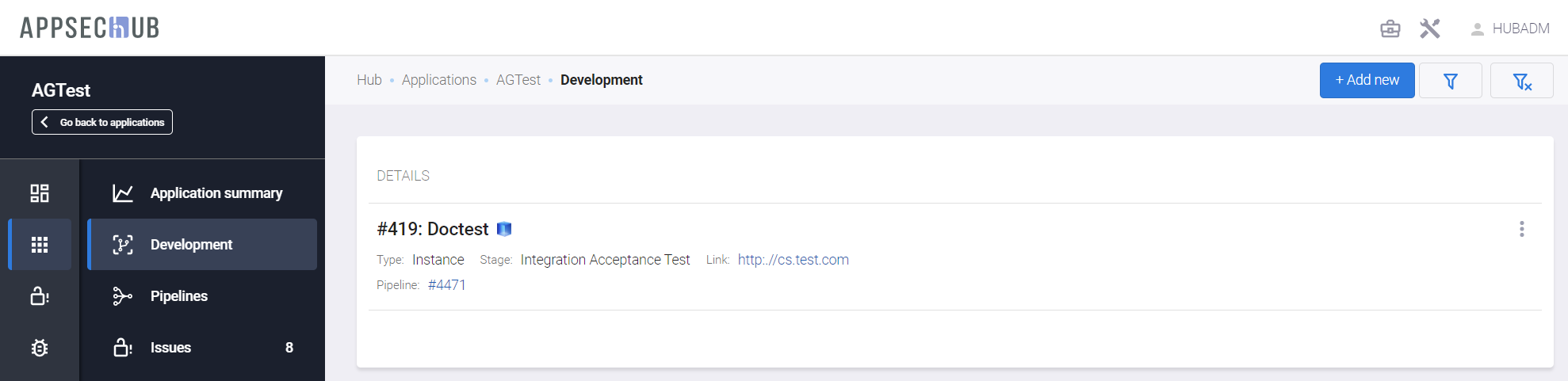 • Перейти на страницу Security Pipeline, в который входит данный экземпляр приложения, с помощью пункта меню Open pipeline details.