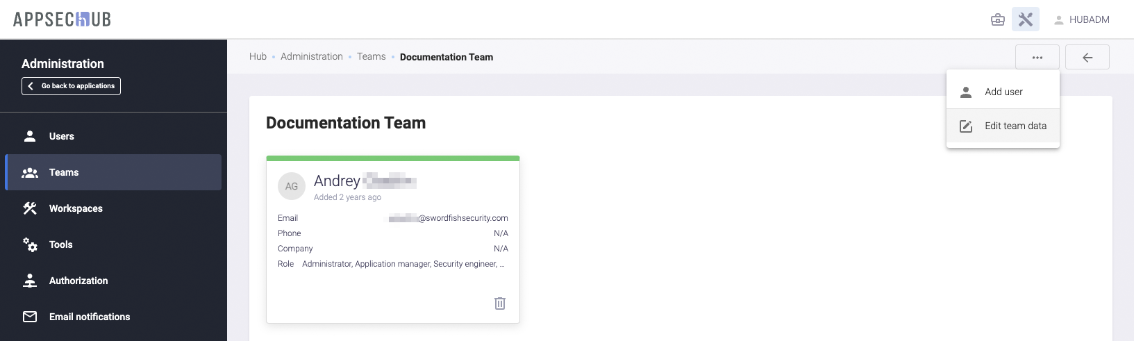 В AppSec.Hub существуют четыре роли пользователей.