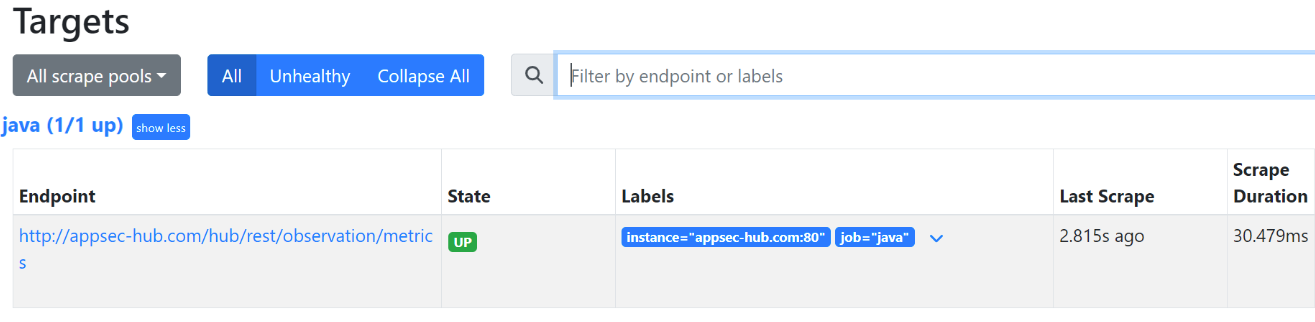 job_name: javametrics_path: /hub/rest/observation/metricstargets: URL AppSec.Hub