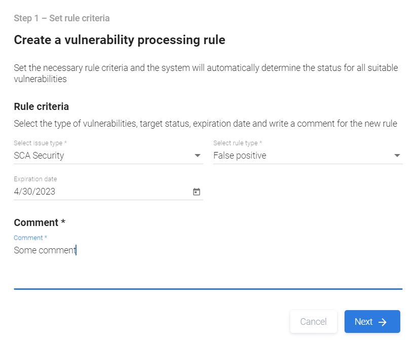 Rule type — тип правила (False positive, Accepted risk или Confirmed).