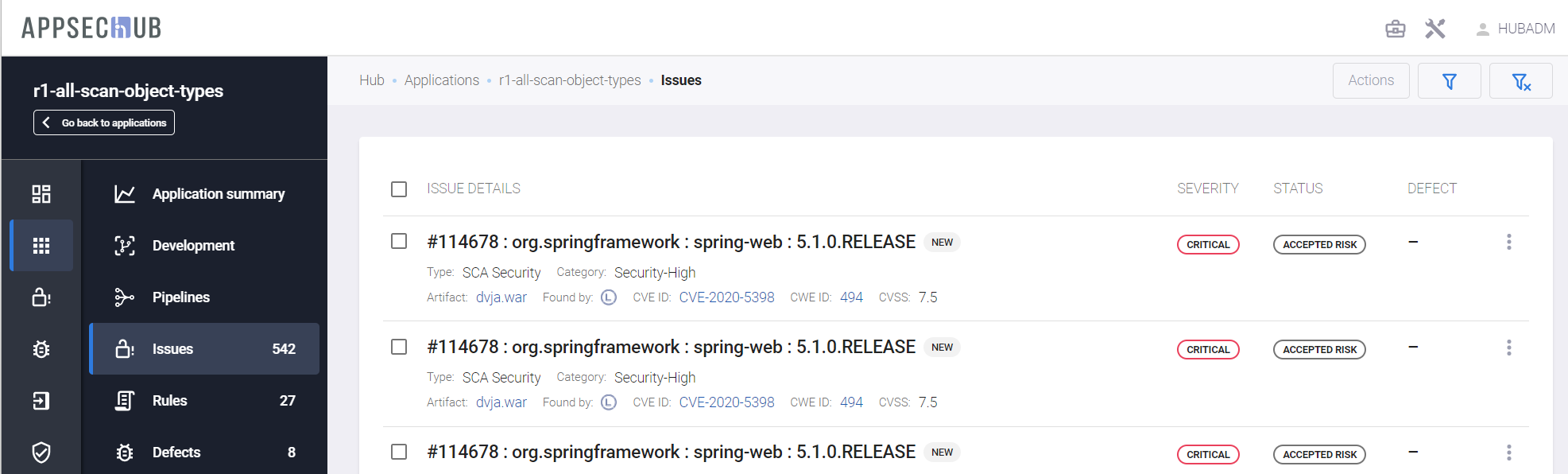 Импортированные проблемы безопасности с одинаковыми идентификаторами рассматриваются AppSec.Hub как одна уязвимость.