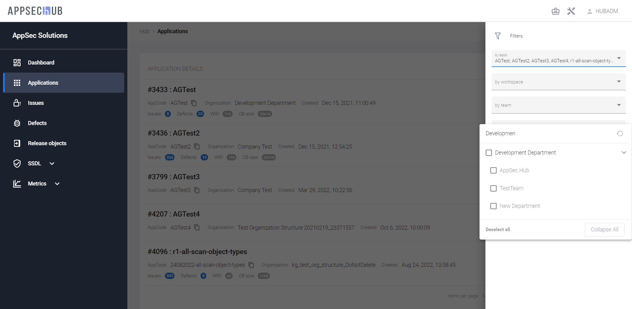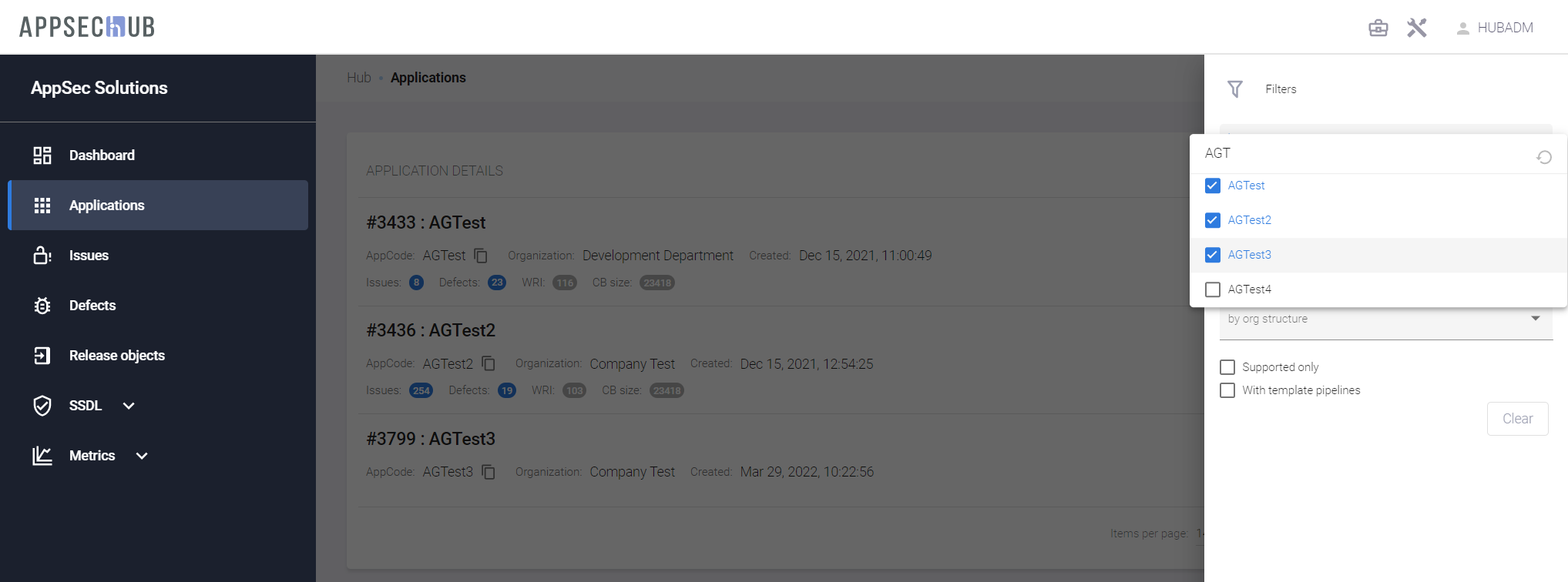 Чтобы начать работу с приложениями, выберите в меню пункт Applications. На экране появится страница приложений AppSec.Hub.