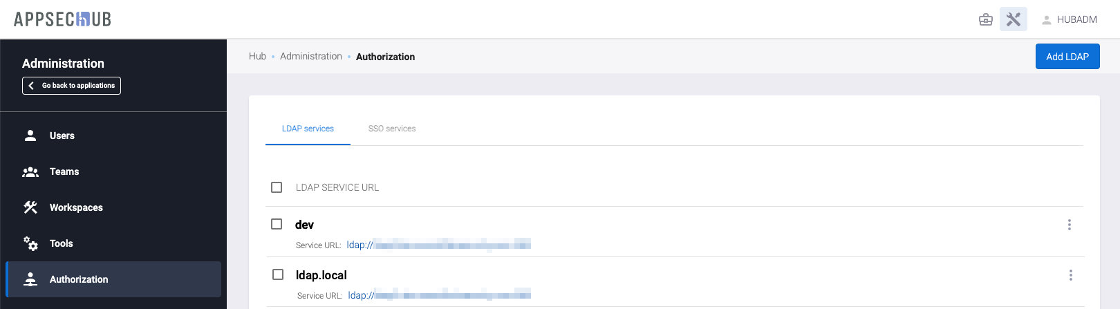 AppSec.Hub поддерживает работу с несколькими LDAP-сервисами.
