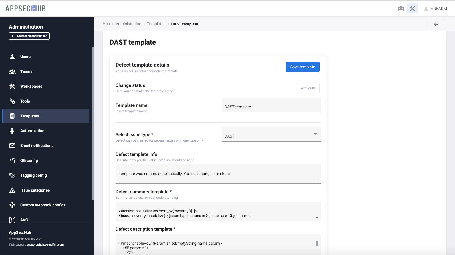 AppSec.Hub позволяет редактировать все существующие шаблоны.