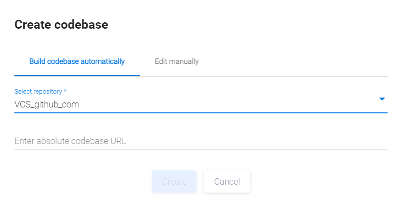 Для создания новой кодовой базы выберите пункт меню Development, нажмите кнопку +Add new в правом верхнем углу и выберите пункт выпадающего меню Add new Codebase. На экране появится окно Create codebase.