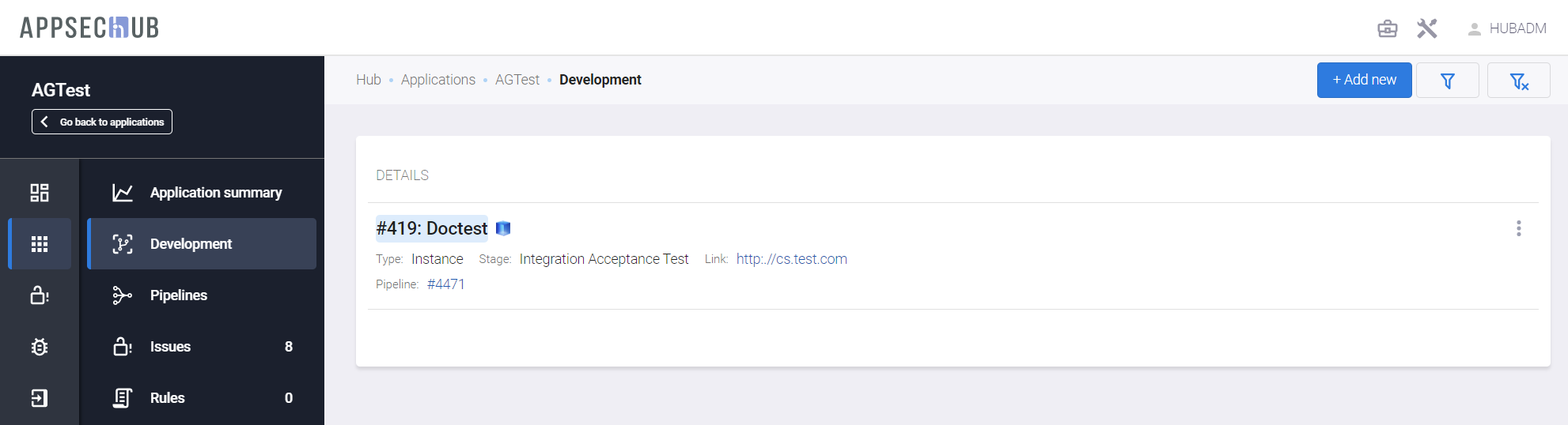 • Перейти на страницу Security Pipeline, в который входит данный экземпляр приложения, с помощью пункта меню Open pipeline details.