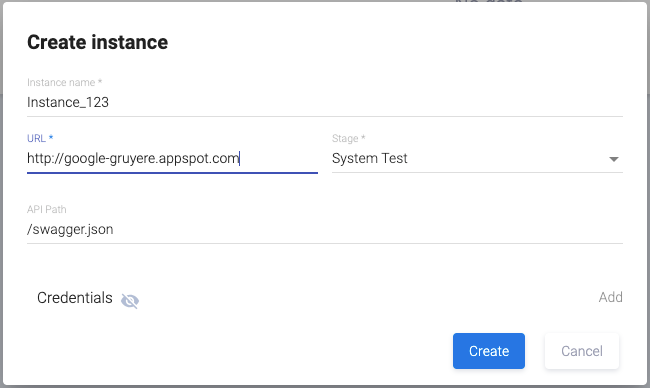 • В разделе Credentials определяется список пользователей и их пароли для доступа к экземпляру приложения. Используйте кнопку Add справа, чтобы добавить нового пользователя. Нажмите иконку рядом с учетными данными, чтобы пароли пользователей отображались на экране. Нажмите эту иконку еще раз, чтобы снова скрыть пароли.