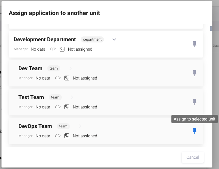 Выберите новое подразделение из списка, нажмите на кнопку Assign to selected unit