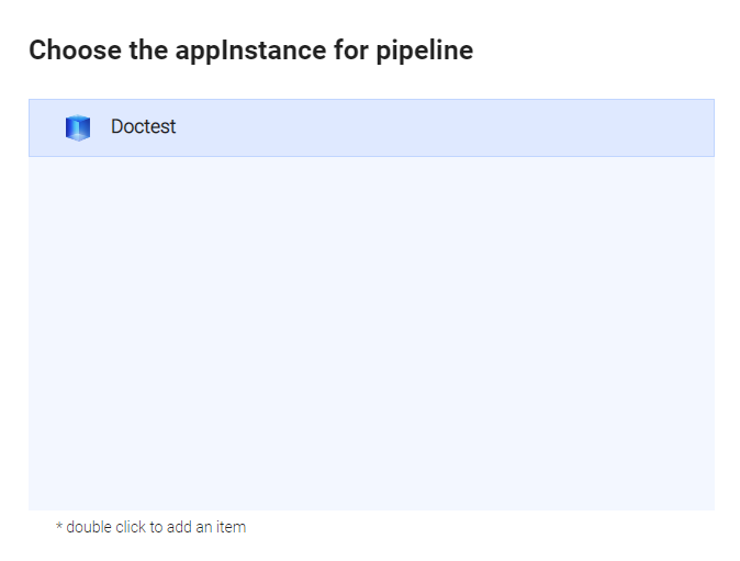 В появившемся окне Choose the AppInstance for pipeline выберите и дважды кликните имя экземпляра приложения, который нужно добавить.