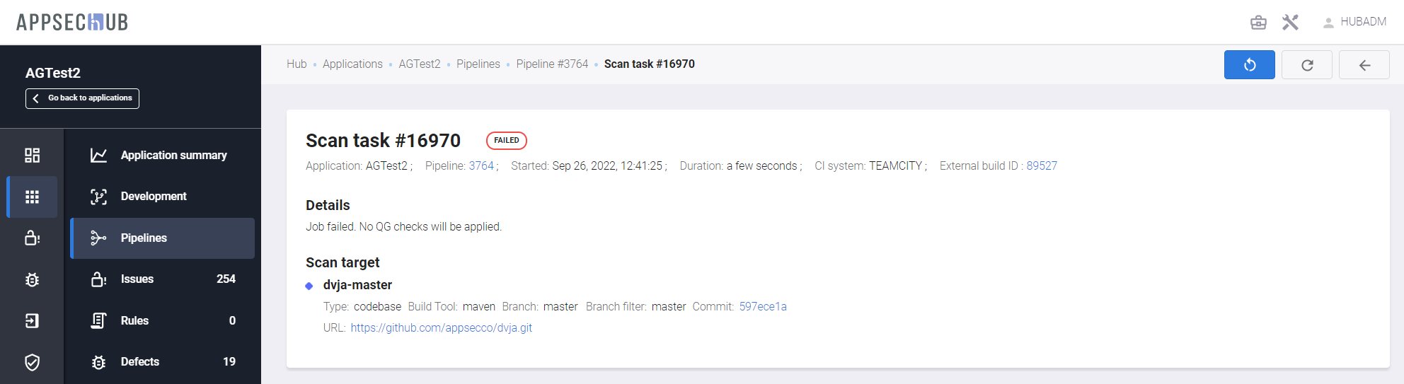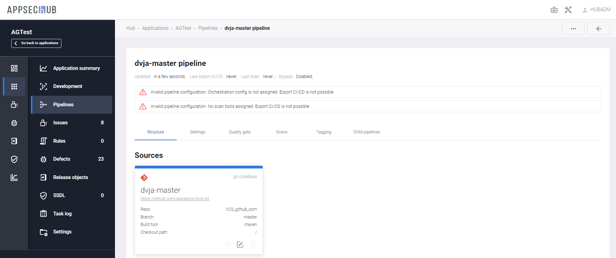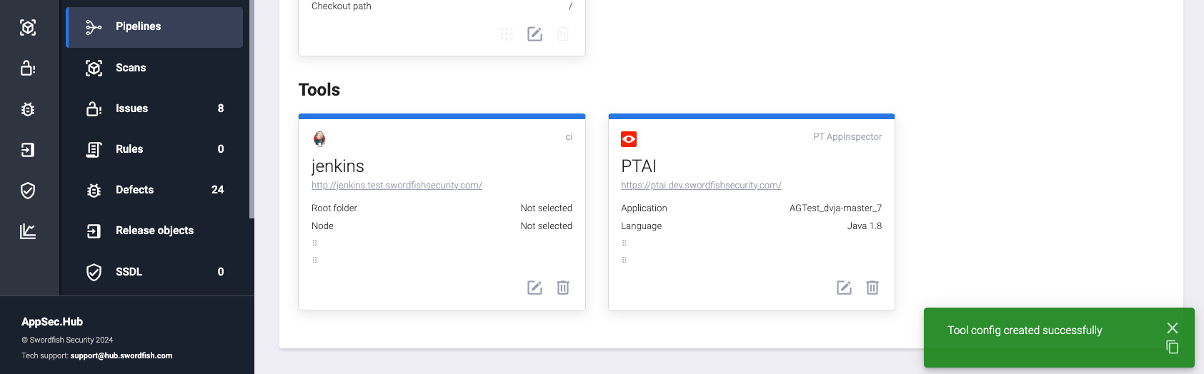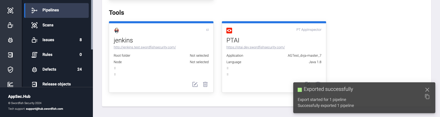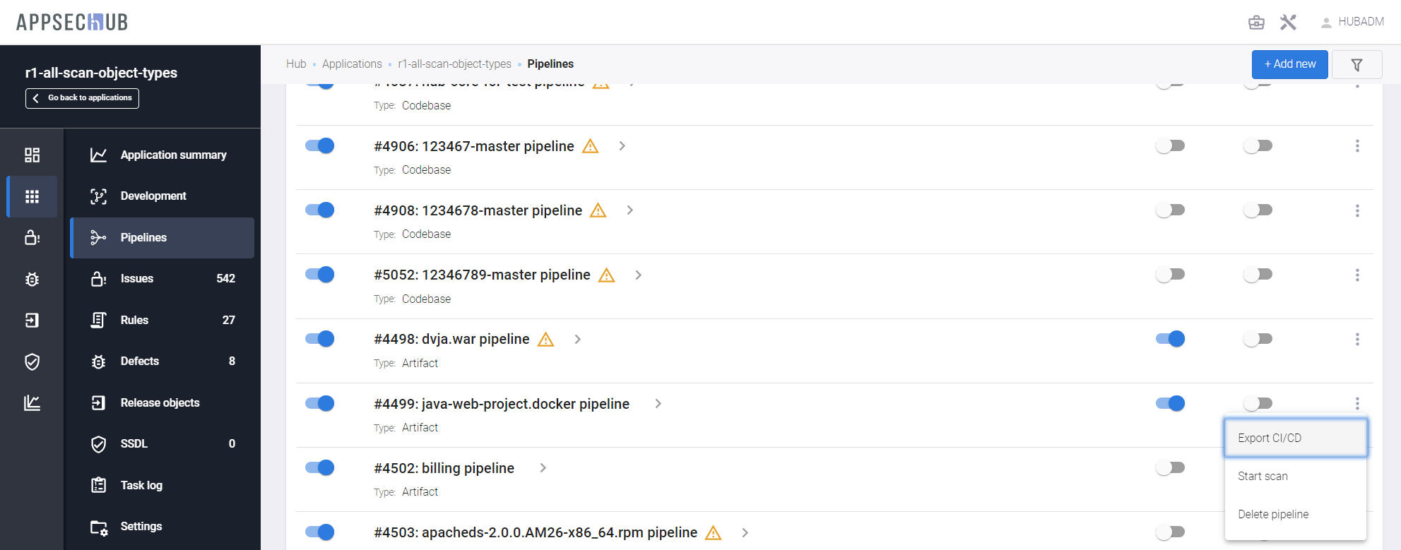 AppSec.Hub предоставляет возможность настройки существующих и создания новых пайплайнов, а также запуска сканирования безопасности с их помощью.