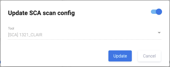 на карточке инструмента сканирования, чтобы настроить параметры сканирования в окне Update SCA scan config.