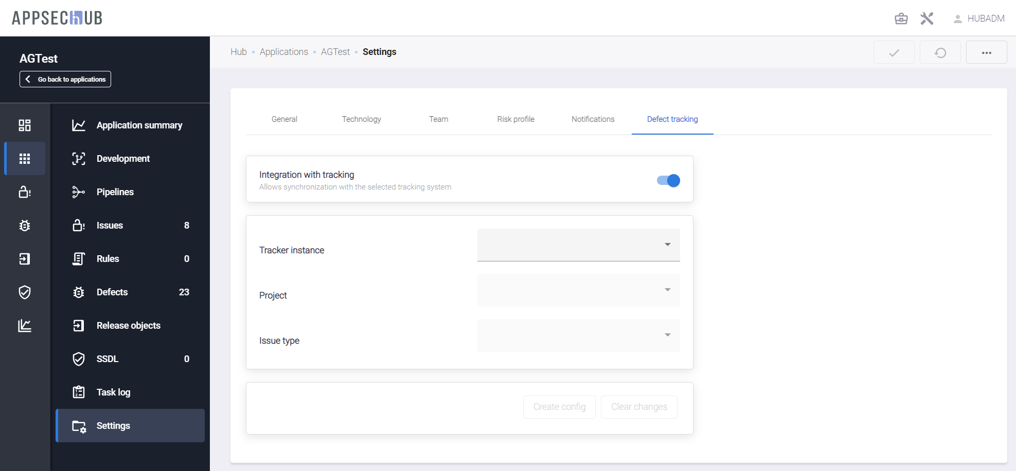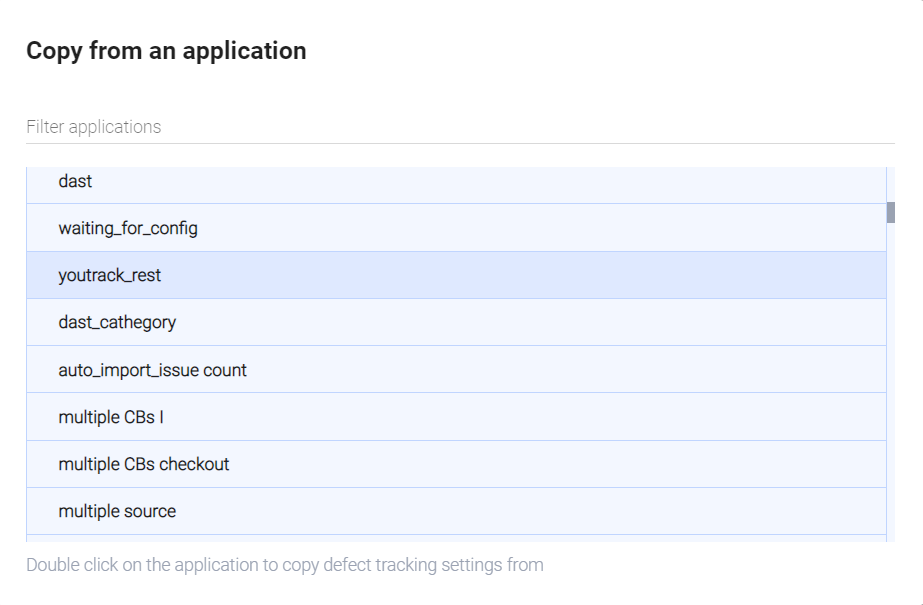 В системе существует возможность просто скопировать все настройки отслеживания дефектов в AppSec.Hub из другого приложения. Для этого на появившейся вкладке Defect Tracking нажмите кнопку Actions в правом верхнем углу, выберите пункт выпадающего меню Copy config from another app.