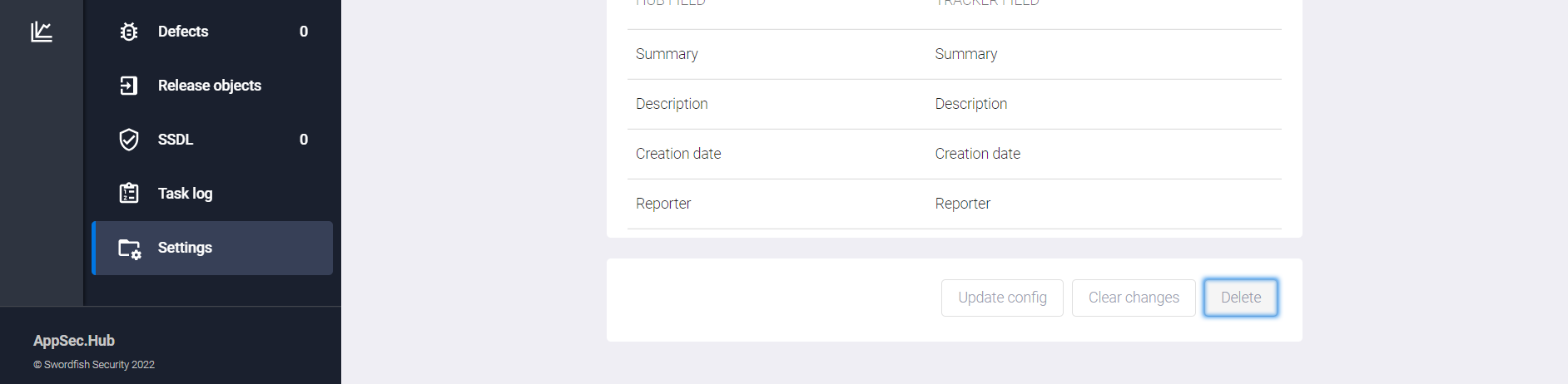 После удаления конфигурации все связи между ранее синхронизированными дефектами и проектной системой отслеживания дефектов разрываются, а значения в поле LAST SYNC на странице Defects изменятся на Not started. См. раздел «Синхронизация дефектов безопасности с системой отслеживания дефектов».