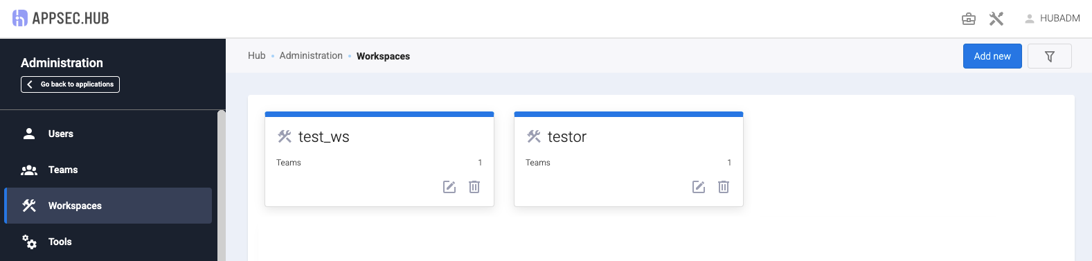 В самом начале работы с AppSec.Hub существует только одно предустановленное рабочее пространство — Default. Все остальные рабочие пространства должны создаваться пользователем с правами Администратора.