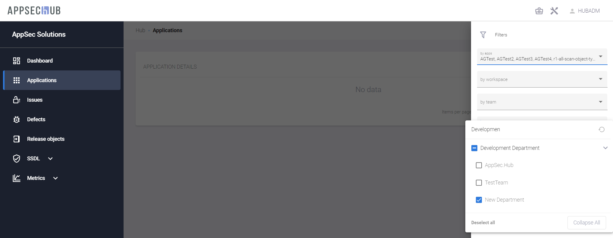 Чтобы начать работу с приложениями, выберите в меню пункт Applications. На экране появится страница приложений AppSec.Hub.